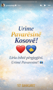 “Liria është përgjegjësi. Urime pavarësinë Kosovë”, shkruhet në postimin e mesfushorit të Sunderlandit